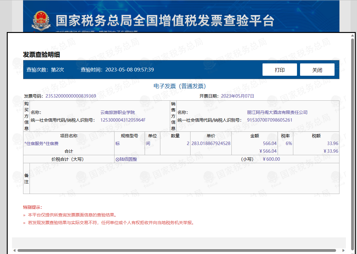 https://inv-veri.chinatax.gov.cn/进行验证,同时打印验证结果作为报销凭证附件方可报销。