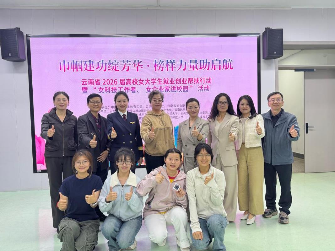 4月1日,2026届云南省高校女大学生就业创业帮扶行动在我校圆满完成。云南省女企业家协会代表马琳、云南省女科技工作者协会代表范源、云南省巾帼劳模、东方航空云南有限公司飞行机长李鑫作为嘉宾走进校园,与我校女大学生面对面交流,共话职业成长与职场发展。