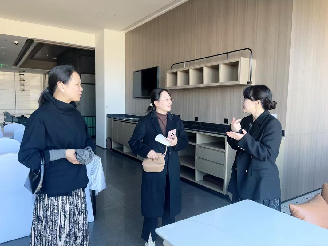 在鹏瑞利酒店群人力资源总监张总及招聘经理钟经理的带领下先后参观了酒店及康护社区。张总详细介绍了鹏瑞利国际健康商旅城的规模、发展历程、业务范围及未来规划,并着重强调了企业不仅在酒店运营、餐饮服务等传统业务领域存在人才缺口,而且对于精通网络运营、视频剪辑、数据分析等多领域技能,具备综合素养的复合型人才有更迫切的需求。通过实地走访,大家对商旅城的整体布局、设施配备以及服务模式有了直观且深入的了解。随后,夏羽向张总介绍了信息工程学院在软件技术、大数据技术、数字媒体技术及计算机网络技术四个专业的优势与特色,展示了我院在相关领域的教育教学成果。双方围绕人才培养、实习就业等方面展开了深入交流。