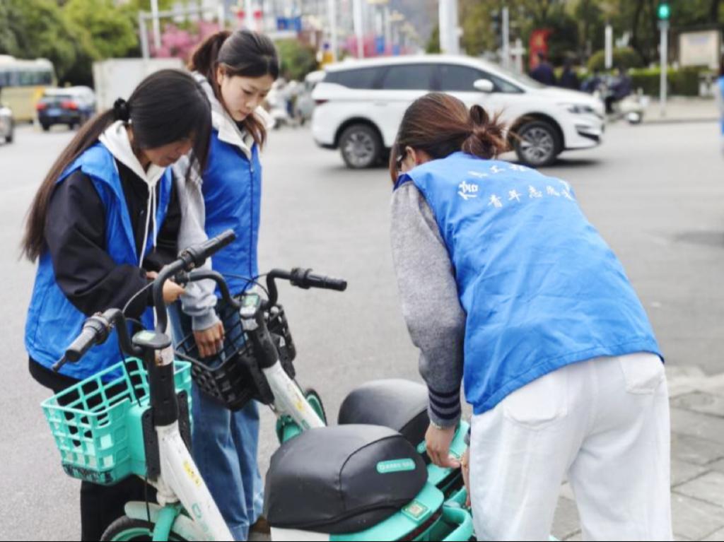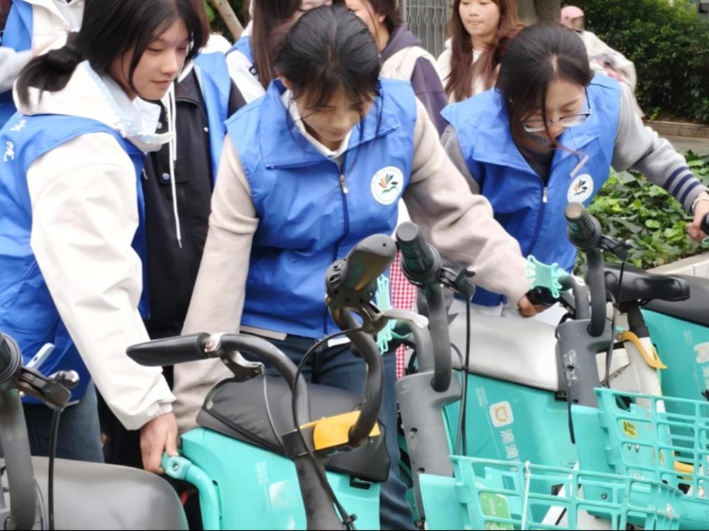 共享单车规范摆放志愿服务活动在高新校区与本部校区同步开展。志愿者们分工明确、协作紧密,认真清理共享单车车身上张贴的各类小广告,随后将车辆整齐有序地摆放到指定区域。尽管初春天气微凉,但志愿者们热情高涨,用实际行动维护校园周边的整洁与秩序,用汗水诠释“服务他人、奉献社会”的雷锋精神。