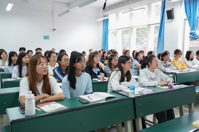 主会场设在报告厅,校领导、全体中层干部、教师及学生代表进行集中收看;其余师生分别在校本部、高新区教学实训基地教室进行同步收看。