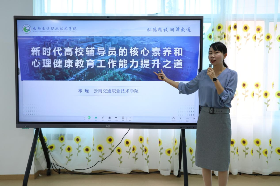 本次培训特别邀请了多位校内外专家进行授课。我校副院长何树称以“思想政治引领学生成长”为题,深入剖析了在新时代背景下如何有效开展大学生思想政治教育工作;云南机电职业技术学院青年辅导员阮智君分享了“如何做好一名辅导员”的实践经验;云南交通职业技术学院学生处副处长、副教授邓瑾则围绕“新时代高校辅导员的核心素养和心理健康教育工作能力提升之道”,为辅导员们提供了宝贵的指导和建议。