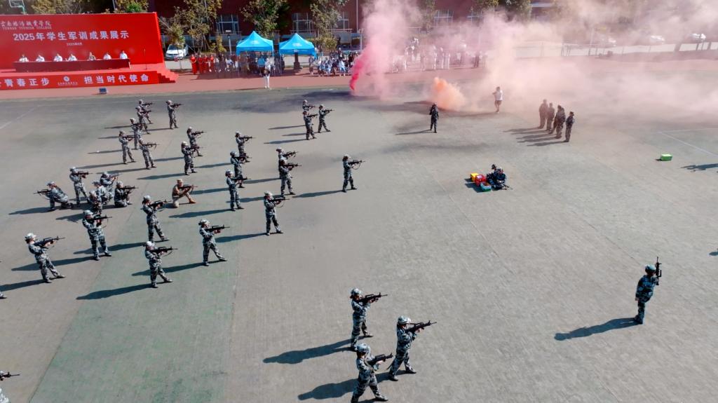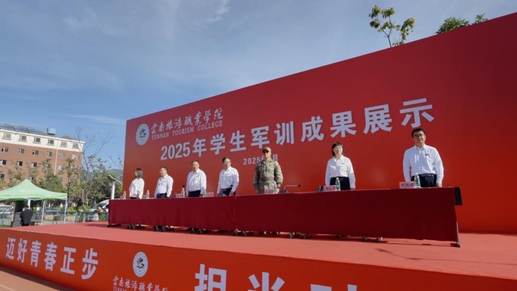 党委副书记王敏作总结讲话时指出,军训是全面贯彻党的教育方针和总体国家安全观,培养社会主义建设者和接班人的战略工程,是实现立德树人根本任务和强军目标根本要求的重要途径,目的在于使大学生增强国防观念,赓续优良传统,传承红色基因。他对新生提出三点希望:一是要抱定爱国志向,担当历史使命;二是要发扬优良作风,锤炼意志品质;三是要躬身求知践行,练就过硬本领。他鼓励全体新生在云南旅游职业学院的学习生涯中,以过硬技能筑牢根基,以远大梦想奋力前行,在民族复兴的历史征程中找准定位、勇挑时代重担,脚踏实地做时代新人,真正践行“请党放心,强国有我”的青春誓言