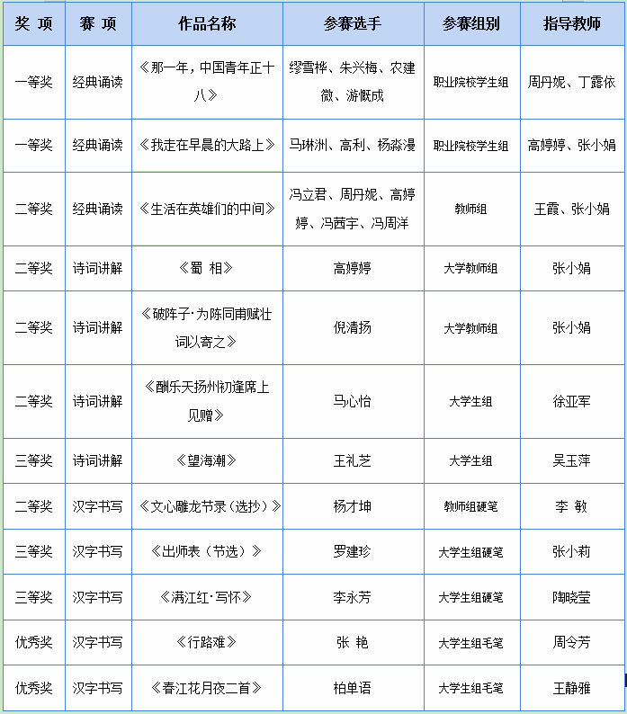 第七届“云岭杯”中华经典诵写讲大赛(云南旅游职业学院)获奖名单
