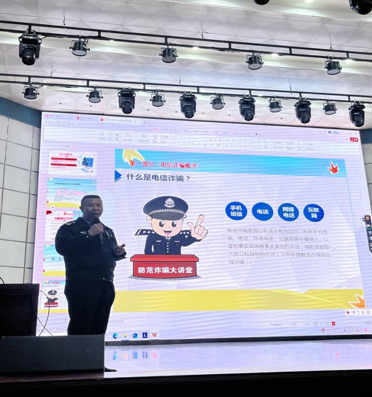 为增强全校师生的法治观念与安全防范意识,维护师生人身财产安全,10月23日下午,我校保卫处邀请法治副校长、马村派出所普劲松警官在学校报告厅举办了以《多学一点反诈知识 少受一些经济损失》为题的法纪安全教育专题讲座。