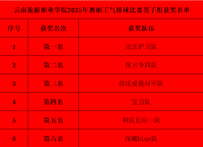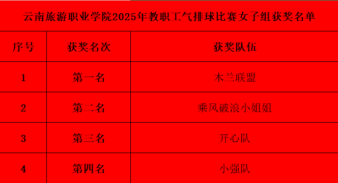 我校2025年教职工气排球比赛于近日圆满落幕。本次赛事历时4周,经过21轮激烈角逐,最终男子组冠军由“汪汪护卫队”斩获,女子组冠军由“木兰联盟斩获,展现出我校教职工团结协作、勇于拼搏的良好精神面貌。