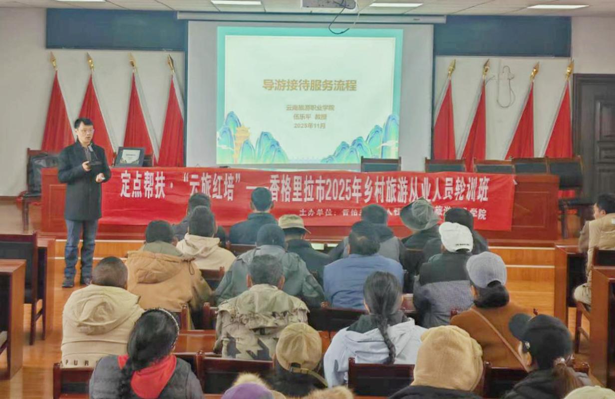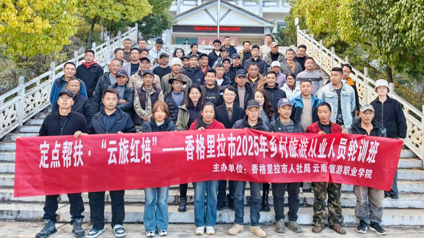 为深入学习贯彻党的二十届四中全会精神,扎实推进党建引领乡村振兴战略落地见效,将党的组织优势切实转化为乡村产业发展的强劲动能,11月4日至7日,我校联合香格里拉市人力资源和社会保障局,在当地三个乡镇成功举办首批“云旅红培”乡村旅游从业人员专题培训。