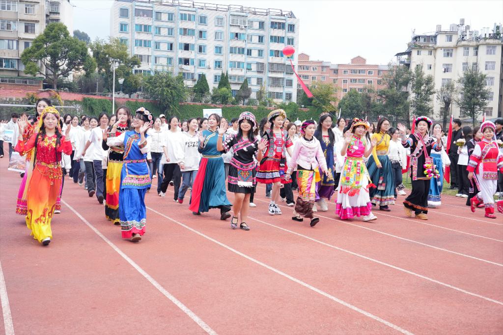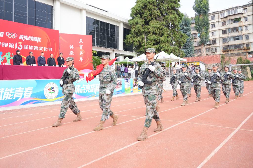 随后,各二级学院代表队方阵依次入场,开启创意多彩、丰富有趣的“巡礼”:运动员们或身着专业制服,或扮演卡通形象;或手持闪亮花球,或拉开五彩礼炮;或舞动金色龙身,或跳起民族舞蹈......各具特色的表演展现着青春绚丽多姿的模样。