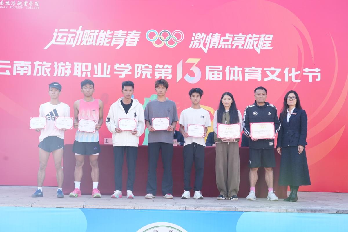我校领导为本次运动会的获奖团队颁奖。教职工比赛中,教务工会小组摘得桂冠,荣获团体总分第一名。学生比赛中,烹饪学院拔得头筹,在田径比赛和趣味比赛中斩获双金;经济管理学院及旅游管理学院分别获得田径比赛和趣味比赛的体育道德风尚奖;资源工程学院、酒店管理学院、文化艺术学院荣获开幕式入场表演优胜奖。