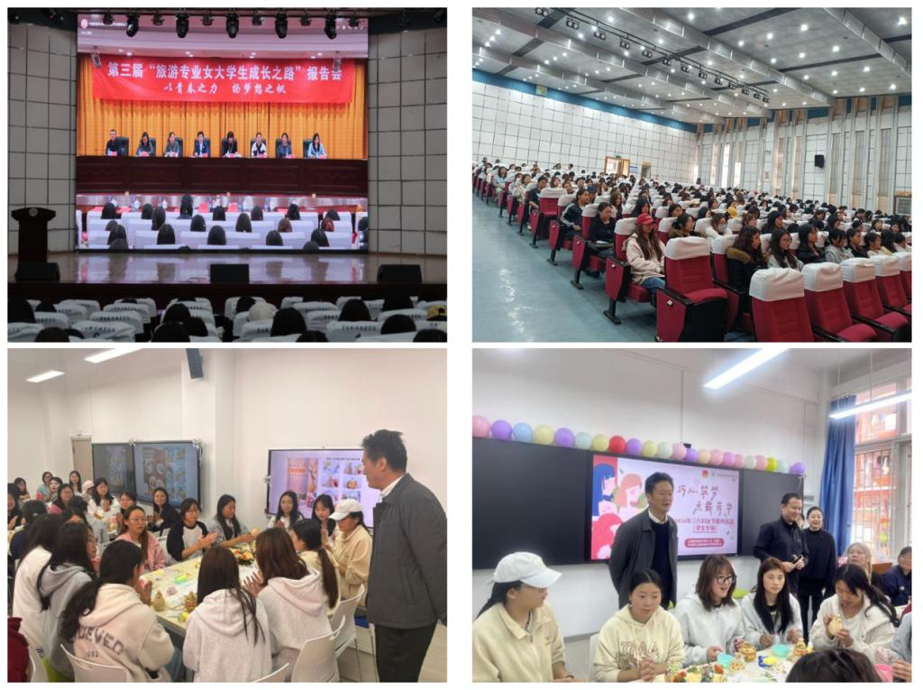 女学生专场活动聚焦职业赋能与创意实践,为女学生成长发展精准助力。4日下午,工会、妇联、学生处联合组织 400 余名女学生集中观看第三届 “旅游专业女大学生成长之路”报告会,通过榜样分享为旅游专业女学生明晰职业发展方向、树立职业信心;6日下午,校团委精心开展 “巧心筑梦,点载芳华” 手工制作活动,女学生们亲手制作杯垫、笔筒、小花瓶等文创作品,在动手创作中锻炼实践能力,绽放青春靓丽风采。