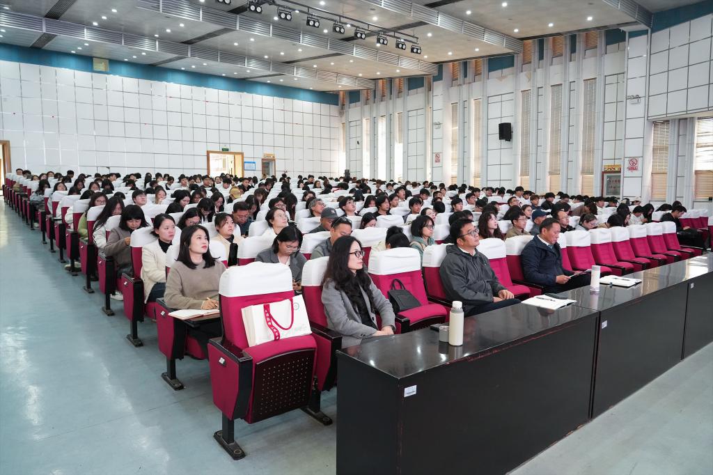 3月16日下午,我校在报告厅举办2026年春季学期“开学第一课”,我校党委书记、教授、博士生导师王翔以“领悟两会精神 勇担时代使命——以奋进之姿开启‘十五五’发展新征程”为题为师生代表进行授课。党委副书记王敏主持本次课堂。