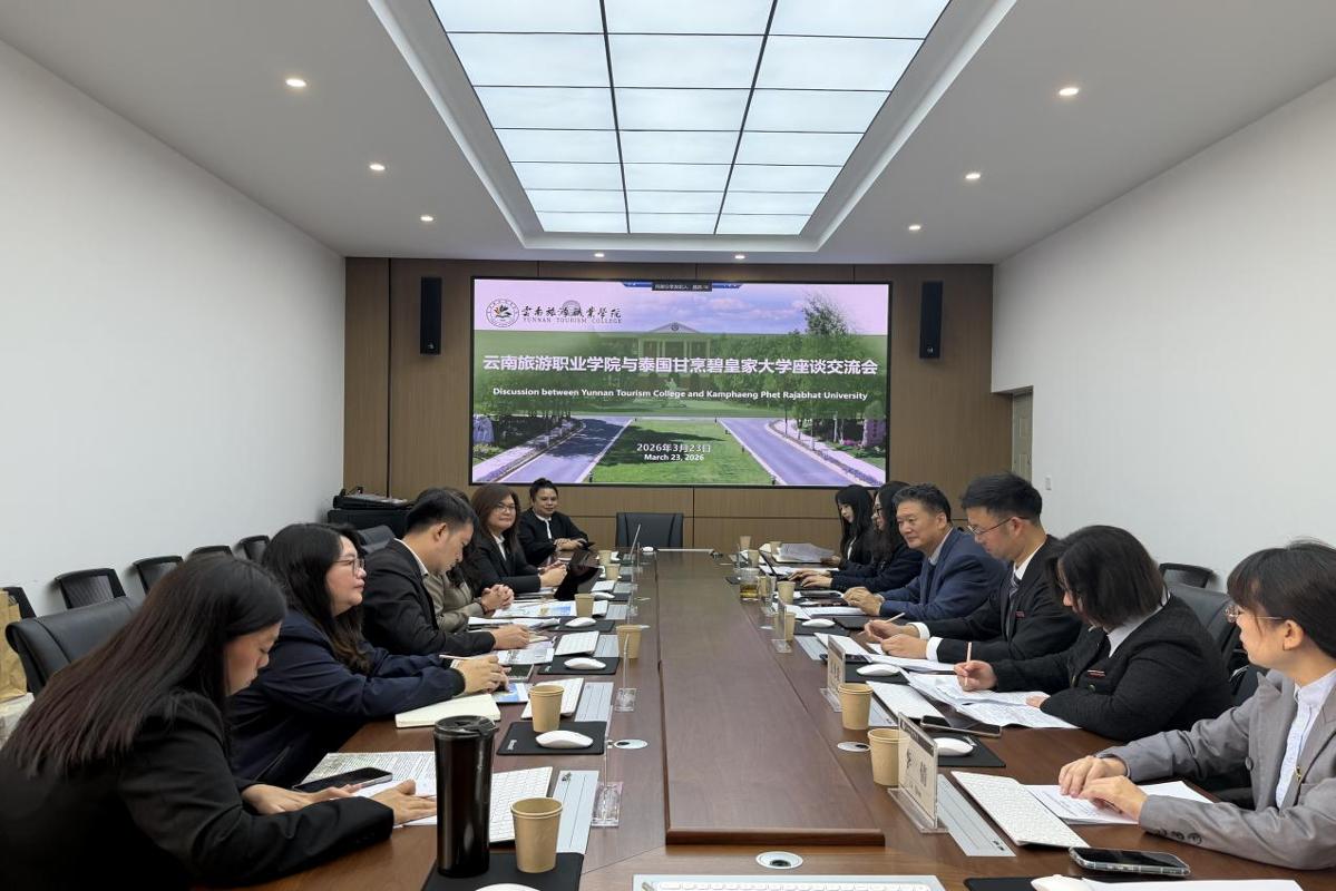 会上,蔡冰院长在致辞中对代表团一行的到来表示热烈欢迎。他表示,中泰两国山水相连、文化相通,旅游和教育领域合作前景广阔,我校高度重视与泰国高校的交流合作。他提出,双方可探索“泰语+技能”“中文+泰语+技能”的复合型人才培养模式,将语言学习与专业技能深度融合,培养既精通语言又掌握旅游、酒店、烹饪等专业技能的国际化应用型人才;可依托云南面向南亚东南亚的区位优势,共同拓展企业在泰国的语言培训、技能培训等合作项目,实现人才培养与企业需求的有效对接。