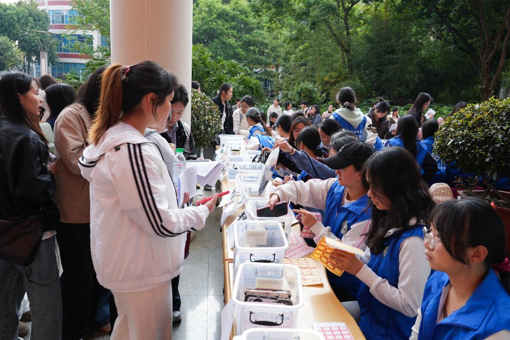 学生志愿者为考生提供电子设备保管服务