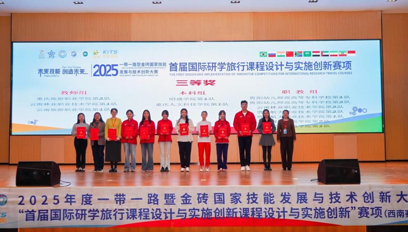 10月20日至22日,2025年“一带一路”暨金砖国家技能发展与技术创新大赛之首届国际研学旅行课程设计与实施创新赛项西南选拔赛在丽江职业技术学院开赛,为期3天的赛事汇聚了云南、贵州、四川、重庆四省(市)20所院校的40支队伍、149名选手同台竞技。我校旅游管理学院凭借扎实的专业素养、创新的设计理念与稳定的现场表现,最终斩获学生组二等奖2项、教师组二等奖1项与三等奖1项,充分彰显了我院在研学旅行专业“师生共育、岗课赛证融通”及国际视野人才培养领域的实力。