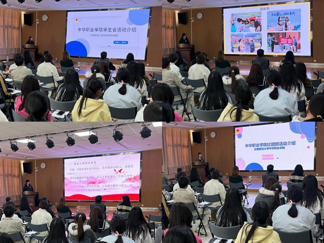 在修远楼会议室,交流进入核心环节。中华职业学院学生会、新闻中心、青年志愿者协会、团委、社团部五大组织负责人依次登台,结合职能特色展开介绍:学生会聚焦学生服务与权益维护展开介绍,新闻中心以专业培训方式助力同学传媒能力提升,青年志愿者协会深耕公益并针对救护知识展开培训,团委分享了“三下乡”“青马工程”的鲜活案例,社团部则以有趣的文化活动助力同学素质提升。生动的分享让同学们对转段后的校园生活有了更深了解。