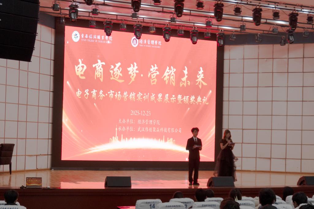 近日,我校经济管理学院成功举办电子商务与市场营销专业实训成果展暨颁奖典礼。活动集中展示了电子商务与市场营销专业学生在直播带货、品牌策划、电商运营等领域的实践成果,吸引了学院师生广泛参与。