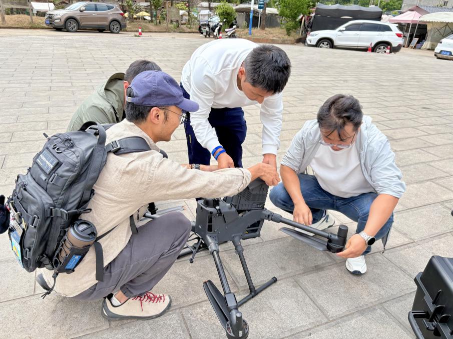 采集现场,测量专业教师操控大疆Matrice 400无人机,分别搭载L2与P1镜头对村落全域进行空中扫描,同步配合其域创新灵光L2 Pro手持三维激光扫描仪完成地面精细扫描,实现空中地面一体化数据采集,高效获取乐居村高精度三维空间信息,为古村落数字遗产保护、文旅规划建设及数字化管理提供了坚实数据支撑。