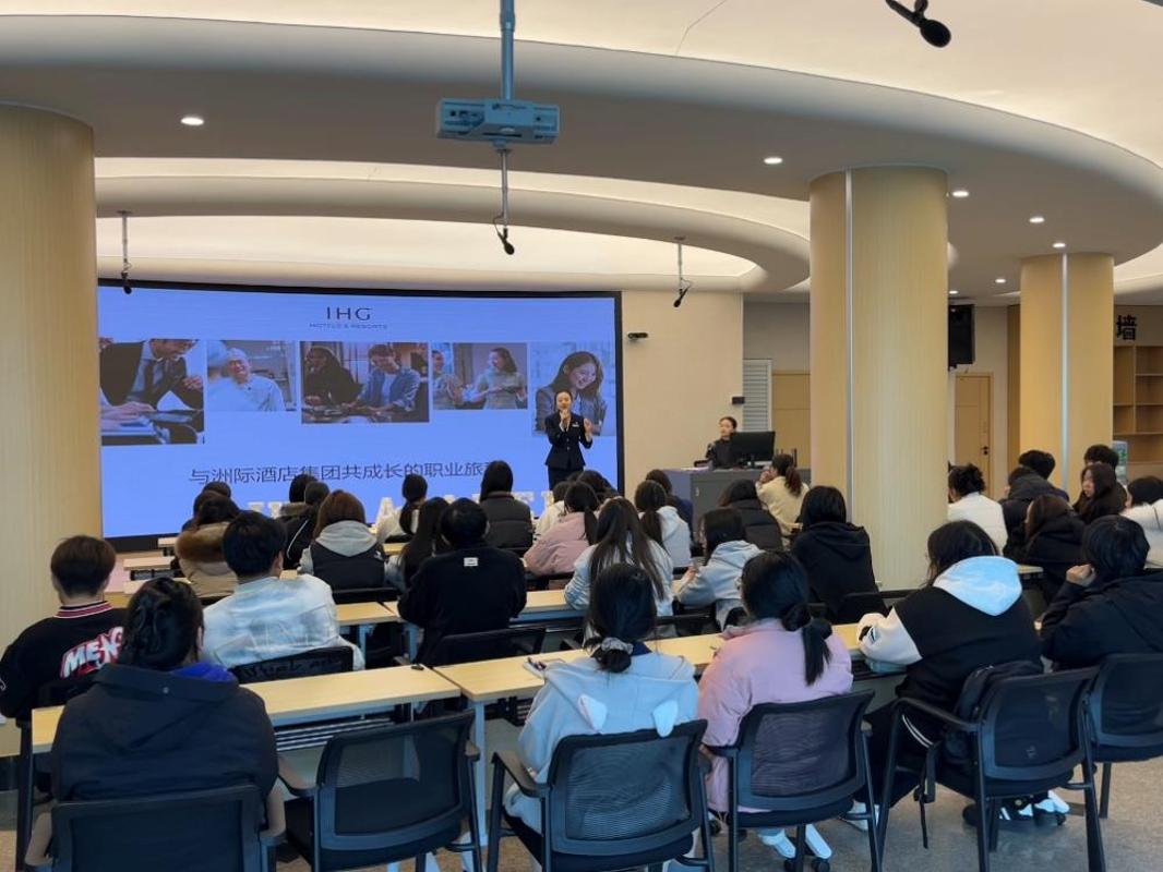 本次宣讲会不仅为我校学生搭建起了解洲际英才学院项目、对接优质行业资源的沟通桥梁,更以精准的就业指引与广阔的职业发展空间为同学们未来职业路径注入动能。未来,酒店管理学院将持续携手行业龙头企业,创新人才培养模式,着力输送 “懂专业、善服务、能创新” 的高素质复合型人才,既为学子成长赋能,更助力酒店行业高质量发展,共同书写产教协同育人的崭新篇章。