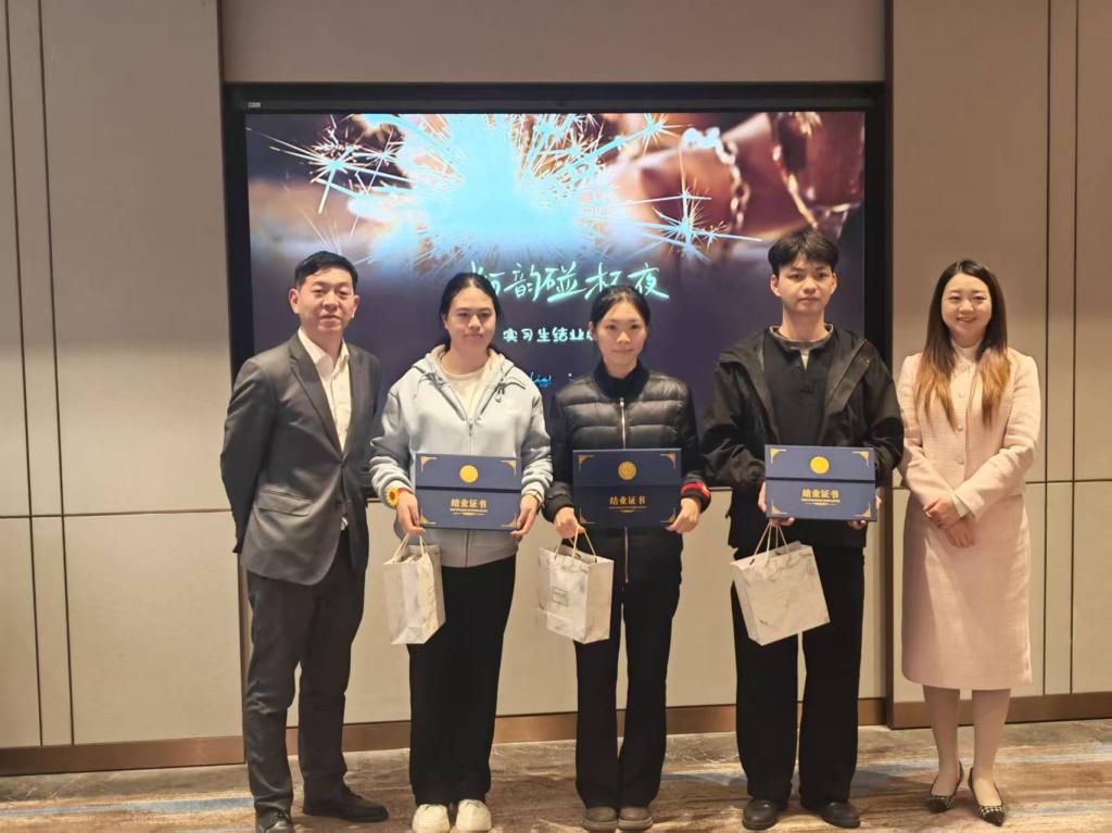 结业会开始前,昆明鹏瑞利酒店群主管率先登台致辞。主管对圆满完成实习任务的同学们表达了诚挚的结业祝福,高度肯定了实习生们在实习期间的表现。他们展现出扎实的专业素养、严谨的工作态度以及良好的职业风貌,主动融入团队,积极担当作为,为酒店的发展贡献了自己的力量。主管还寄语同学们,将实习期间积累的实践经验转化为成长动力,在未来的职业道路上稳步前行,绽放属于自己的光彩。