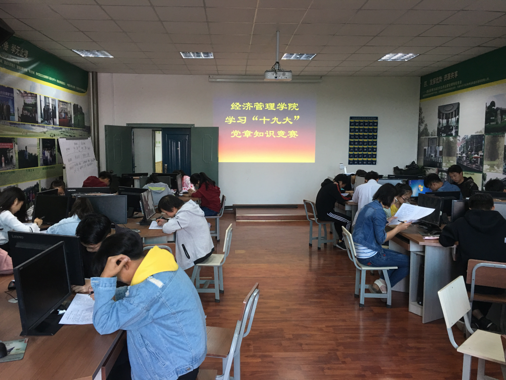 自党的十九大开幕以来,云南旅游职业学院经济管理学院上下联动,联系实际,多措并举,迅速掀起学习宣传贯彻党的十九大精神热潮。学习宣传贯彻党的十九大精神成为当前和今后一段时期全院师生员工的首要政治任务;4月9日晚,学院实训室,经济管理学院在学生干部中开展了全员学习贯彻十九大精神、党史的知识竞赛活动。