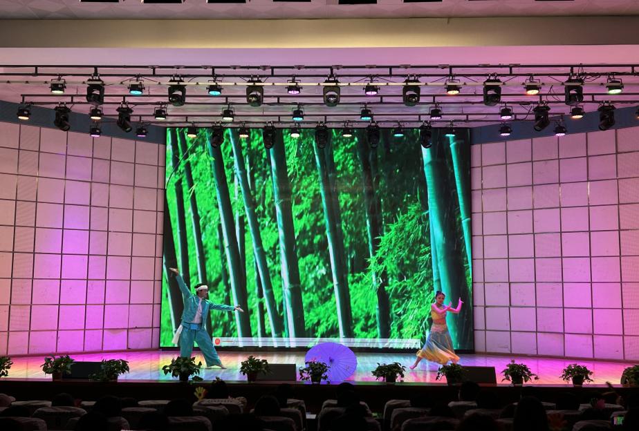 整场晚会精心设计了“青春启航·活力开场”“文化交融·民族风情”“青春思考·使命担当”“梦想与未来·燃情收尾”四个篇章,节目形式多样,内涵丰富。从活力四射的开场舞《白日梦想家》、充满民族风情的《傣寨雀语》《石榴花开》,到引人深思的朗诵与反诈小品《校园诈骗》,再到深情演绎的《如愿》《我爱你中国》,充分展现了旅管学子多才多艺、积极向上的精神风貌和对家国情怀、职业使命的深刻理解。