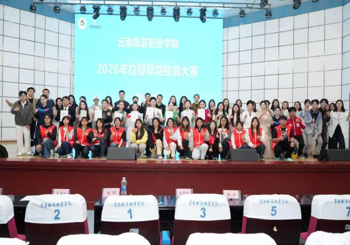4月1日下午,云南旅游职业学院2026年校园导游技能大赛决赛在学校报告厅成功举办。本次大赛由旅游管理学院主办,以导游服务核心技能为载体,以赛促教、以赛促学,全面检验学生专业实践能力与职业综合素养。大赛初赛共吸引144名同学踊跃报名,经过层层选拔,30人晋级复赛,最终10名优秀选手脱颖而出,进入决赛。