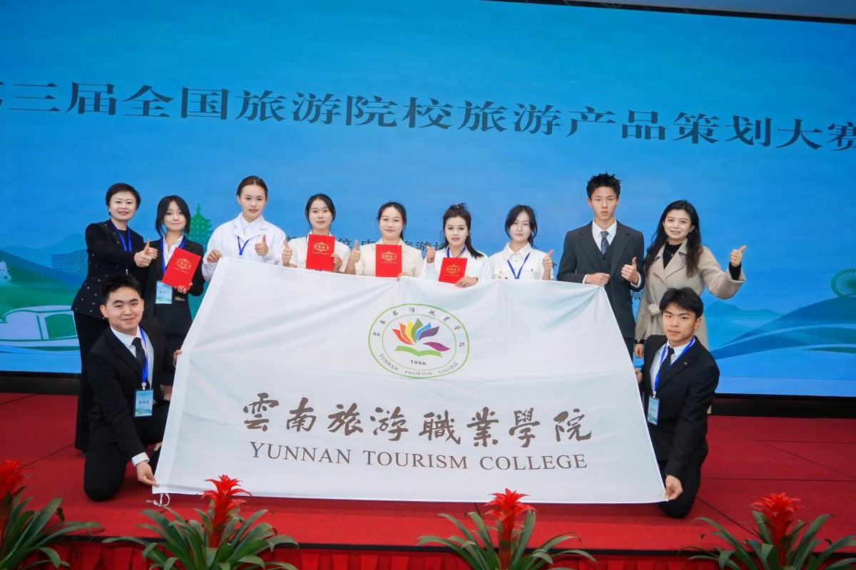 近日,由中国旅游协会指导,中国旅游协会旅游教育分会、浙江旅游职业学院共同主办,舟山市普陀区文化和广电旅游体育局、杭州领云软件有限公司协办的第三届全国旅游院校旅游产品策划大赛在浙江舟山普陀区落下帷幕。我校旅游管理学院选派的五支高职组学生团队成功入围决赛,团队成员凭借专业群坚实的教学积淀、扎实的专业技能、创新的策划理念及出色的现场展示,从全国各地参赛队伍中脱颖而出,最终斩获高校组特等奖1项、一等奖2项、二等奖2项的优异成绩,充分展现了云旅学子的卓越风采,也彰显了学校旅游管理省级“双高”专业群的建设成效与育人实力。