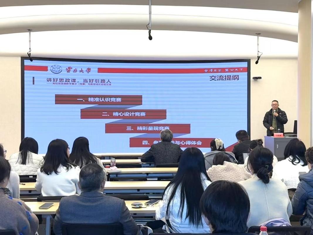 为深入学习贯彻党的二十届四中全会精神,进一步提升思想政治理论课教学质量,强化育人实效,1月14日下午,学院特邀云南大学马克思主义学院李雪章教授作《讲好思政课 当好引路人》专题讲座。讲座由学院王翔宇副院长主持,全体专职思政课教师参加讲座。