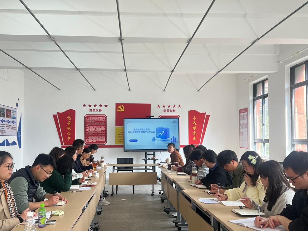 随后针对新学期的教学安排,副院长沈晓文对教学常规工作进行了详细部署,要求所有教师须在规定时间内完成教学一体化平台的课程资源上传与更新,确保教学资料的规范性与完整性,再次重申了实训室安全管理规定,要求课前检查、课中监督、课后清理,责任落实到人。同时还对2026届和2027届学生的实习与就业工作进行了专题研讨与部署。