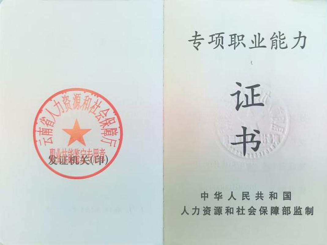 专项职业能力证书是国家职业资格证书体系的重要组成部分,由人社部统一印制、省级人社部门认证颁发,具有极高的权威性和社会认可度。