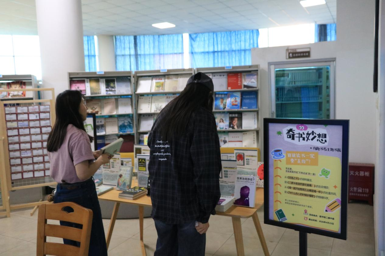 今年读书日活动也延续了往年深受欢迎的经典环节,本次“时光慢递”给未来的一封信活动依旧温情满满。师生们静心执笔,将当下的目标、对未来的憧憬或心底的悄悄话,郑重地封入信笺,让今日的期待与明日的收获完成一场跨越时空的温暖对话。与此同时,图书馆二楼中庭的“奇书妙想”有趣书名主题书展也吸引了众多师生驻足。展台上一本本趣味十足的书籍,搭配着充满巧思的展示方式,让大家对阅读产生了全新的好奇与探索欲。一旁的问答墙更是成为师生互动的小天地,大家或写下自己对书籍的疑问,或认真回复他人的问题,笔尖的交流让阅读的乐趣在校园里传递蔓延。