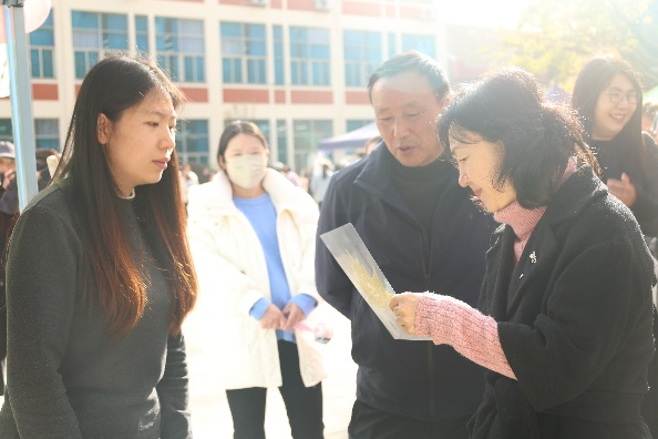 展览现场,师生逐一参观各小组的IP设计作品展位,聆听各小组对设计理念、文化寓意与创作过程的详细讲解。老师们对同学们丰富的想象力、扎实的设计技能以及真挚的学院情怀给予充分肯定和表扬,在现场进行了细致指导,就设计细节、创意延伸与实际应用等方面提出了宝贵建议。