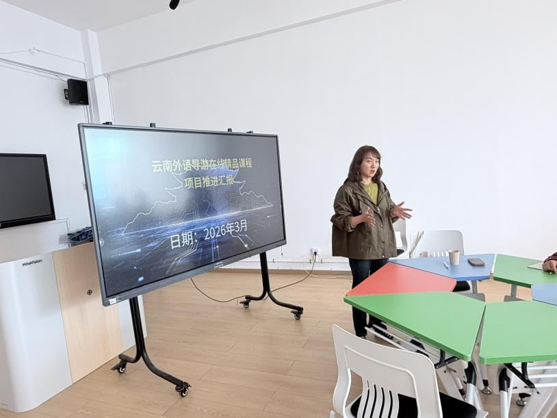 为积极响应国家教育数字化战略行动,促进智能技术与教育教学深度融合,2026年4月1日下午,外语学院组织了第三次“云南外语导游培训线上精品课程项目”课程建设进度推进会。这标志着该项目在前期扎实工作的基础上,迈入了提质增效的新阶段。