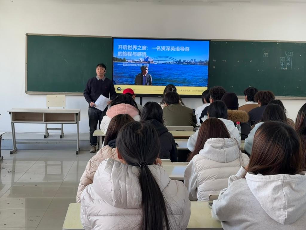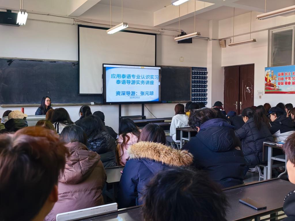 12月1日下午,学院邀请了英语、泰语及日语资深导游进行专家专题讲座。行业专家分享了云南省旅游业发展概况、语种导游工作要求、带团经验等。聆听讲座后,同学们对口译、跨文化沟通及应急处理能力等学习目标的树立有了更加明晰的认识。
