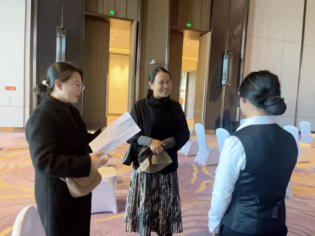 在鹏瑞利酒店群人力资源总监张总及招聘经理钟经理的带领下先后参观了酒店及康护社区。张总详细介绍了鹏瑞利国际健康商旅城的规模、发展历程、业务范围及未来规划,并着重强调了企业不仅在酒店运营、餐饮服务等传统业务领域存在人才缺口,而且对于精通网络运营、视频剪辑、数据分析等多领域技能,具备综合素养的复合型人才有更迫切的需求。通过实地走访,大家对商旅城的整体布局、设施配备以及服务模式有了直观且深入的了解。随后,夏羽向张总介绍了信息工程学院在软件技术、大数据技术、数字媒体技术及计算机网络技术四个专业的优势与特色,展示了我院在相关领域的教育教学成果。双方围绕人才培养、实习就业等方面展开了深入交流。
