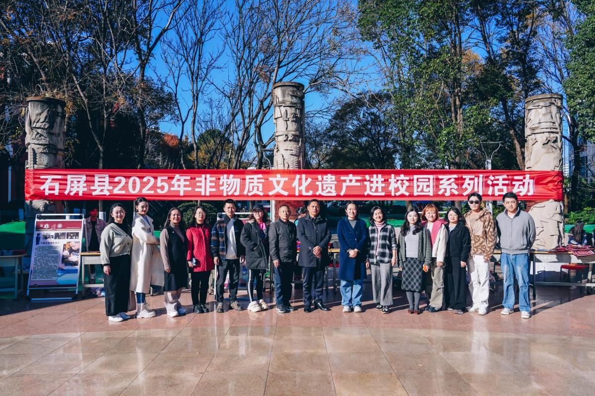 为深入推动中华优秀传统文化活态传承,搭建地方非遗文化与校园文化深度融合平台,12月10日,我校与云南省石屏县文化和旅游局联合主办的“石屏县非物质文化遗产进校园”系列活动圆满落幕。此次活动以地方非遗资源为核心,使我校学子近距离触摸非遗魅力、感受文化底蕴,切实推动非遗文化融入文化育人体系,助力中华优秀传统文化薪火相传。活动参与人员合照本次活动特别邀请国家级非物质文化遗产传承人施万恒、省级非物质文化遗产传承人普美芳,以沉浸式教学、面对面交流的形式,为我校师生们传授非遗技艺,搭建起非遗...