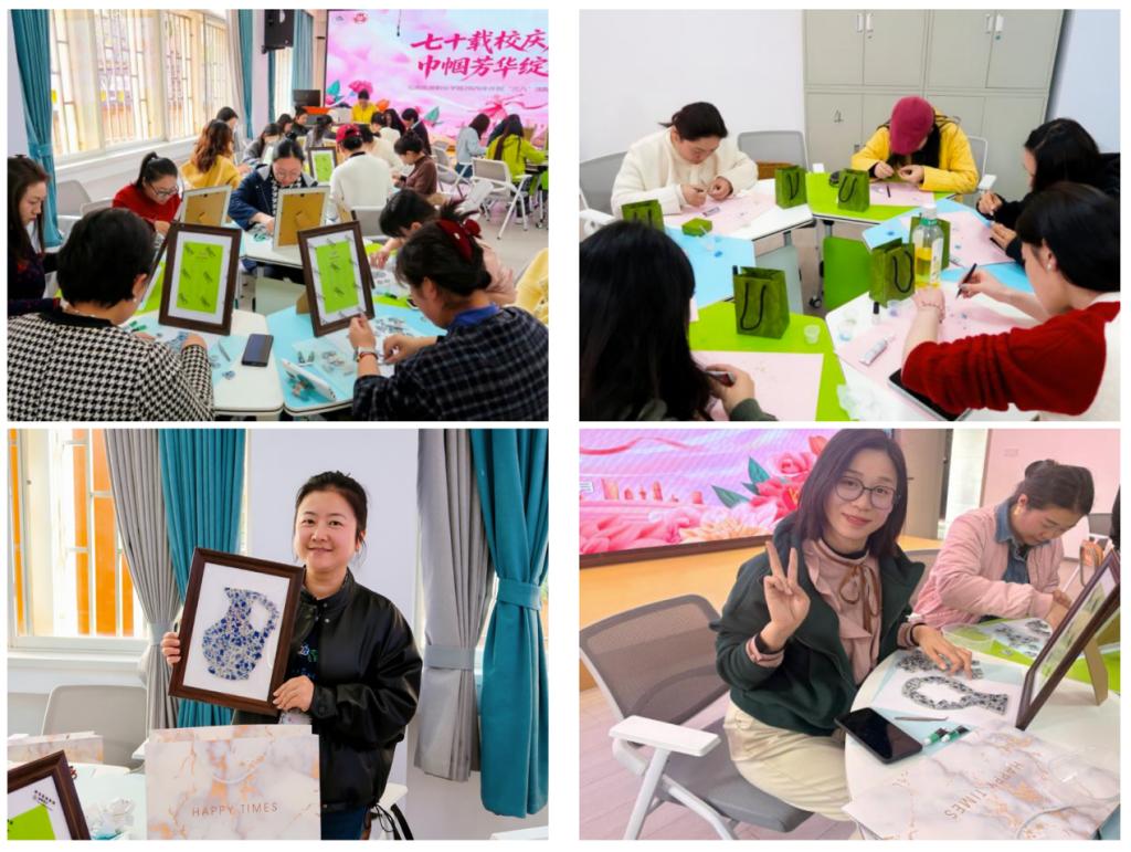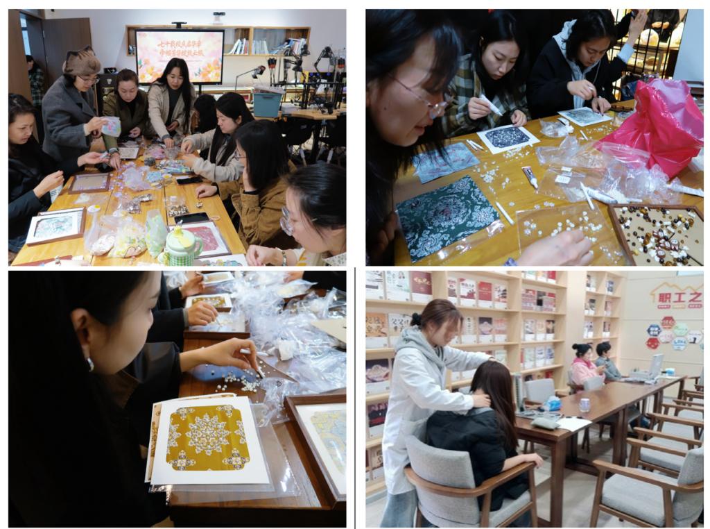 螺钿胸针、青花瓷拼贴画制作活动现场