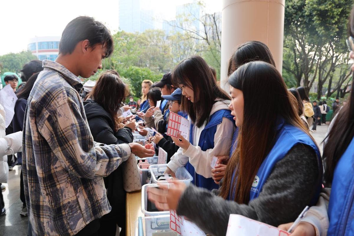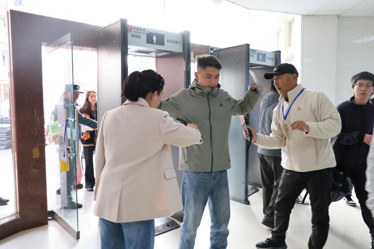 考试当天,考务组和保障组人员根据要求压实责任,紧密协同配合,确保各项工作顺利开展,保证了考场内外的良好秩序;学生志愿者为考生提供电子设备保管、考场指引等周到贴心服务,助力考生轻装从容上阵。