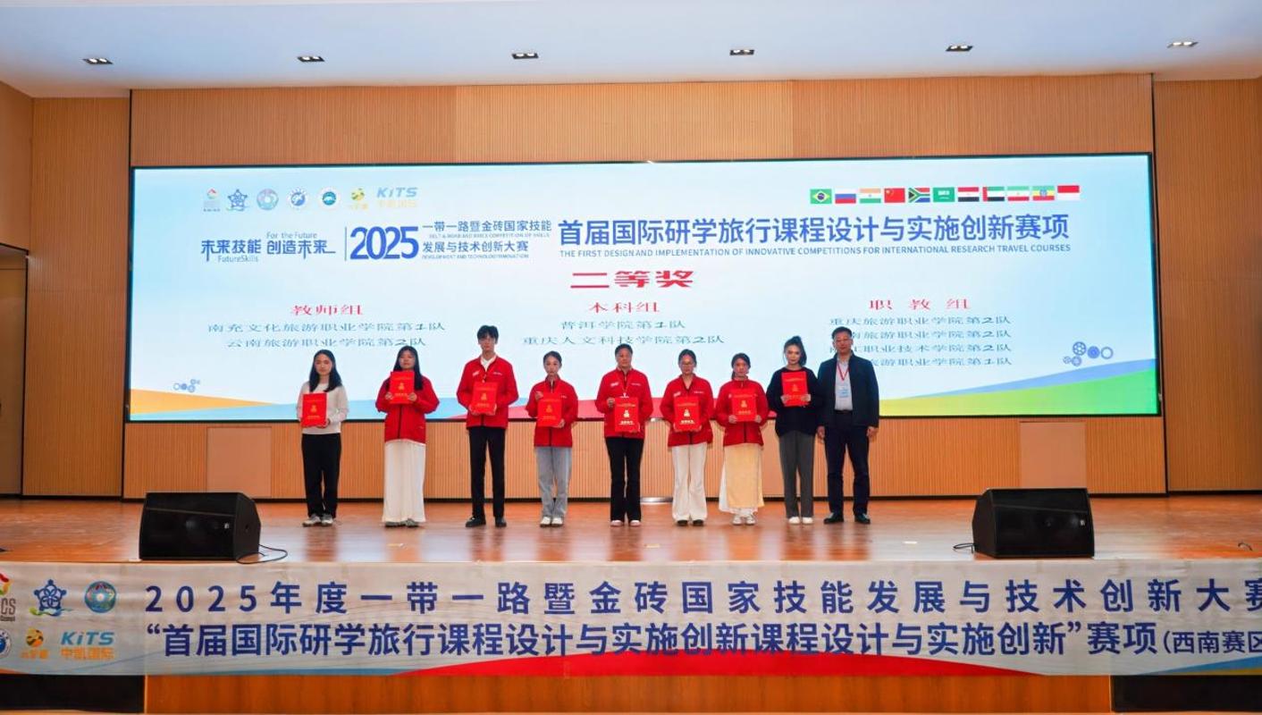 10月20日至22日,2025年“一带一路”暨金砖国家技能发展与技术创新大赛之首届国际研学旅行课程设计与实施创新赛项西南选拔赛在丽江职业技术学院开赛,为期3天的赛事汇聚了云南、贵州、四川、重庆四省(市)20所院校的40支队伍、149名选手同台竞技。我校旅游管理学院凭借扎实的专业素养、创新的设计理念与稳定的现场表现,最终斩获学生组二等奖2项、教师组二等奖1项与三等奖1项,充分彰显了我院在研学旅行专业“师生共育、岗课赛证融通”及国际视野人才培养领域的实力。