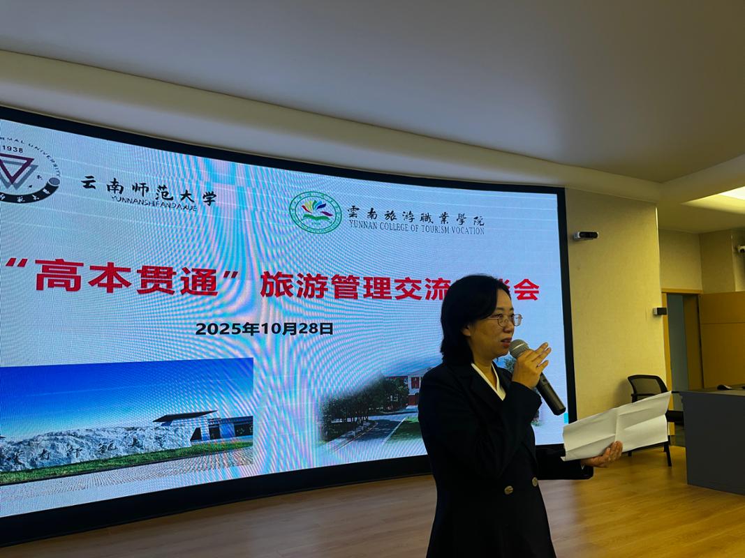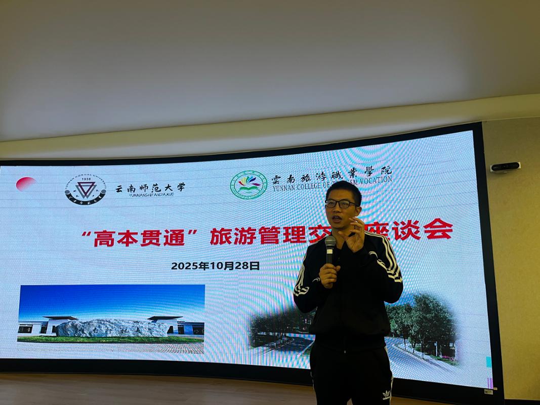 本次座谈以“深度了解、精准对接”为主题,通过观看两校宣传片,了解双方办学历史、专业特色、师生规模及近年办学成果,为后续人才培养衔接搭建了认知基础。我校旅游管理学院院长袁浩镛与云南师范大学管理学院院长李艳分别发言,围绕“高本贯通”人才培养模式创新、课程体系衔接逻辑、学生成长发展路径等核心议题展开深入交流,明确了“以学生为中心、以质量为核心”的合作导向。