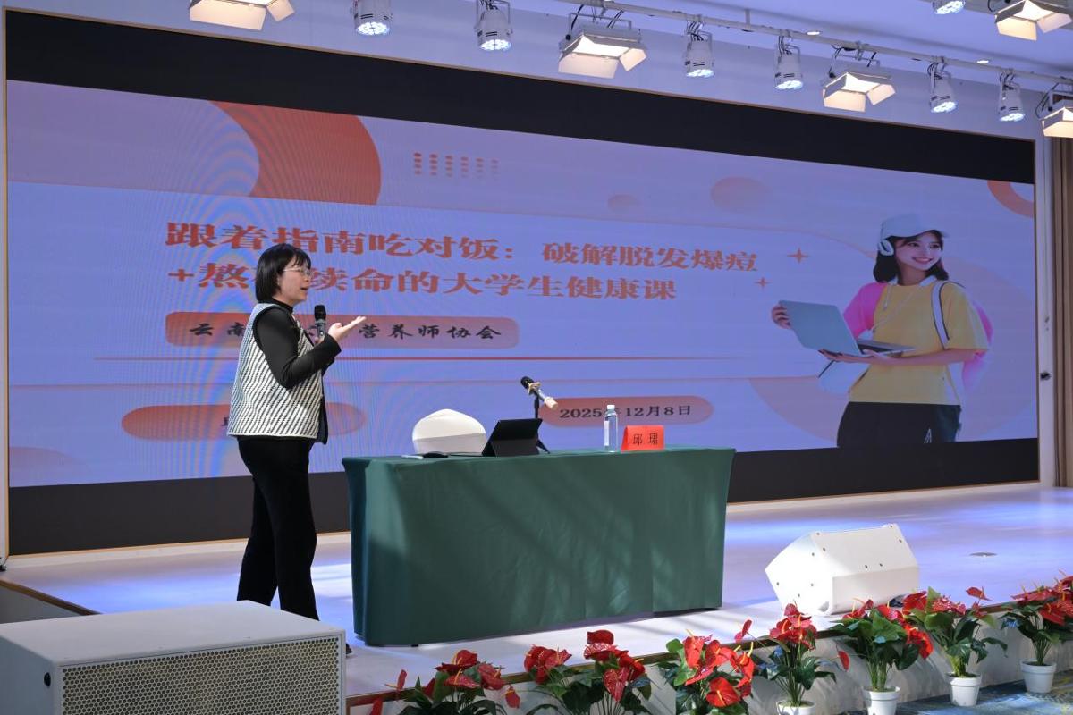 同时,烹饪学院还联合云南省营养师协会特邀营养协会副会长邱珺围绕食材营养搭配、大学生健康饮食理念及消费者健康需求等内容开展营养与健康知识专题讲座,帮助学生树立科学的健康饮食观,提升自主健康管理能力。