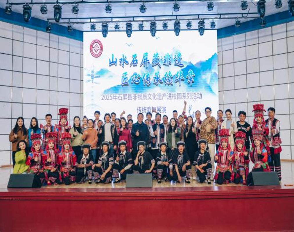 为深入推动中华优秀传统文化活态传承,搭建地方非遗文化与校园文化深度融合平台,12月10日,我校与云南省石屏县文化和旅游局联合主办的“石屏县非物质文化遗产进校园”系列活动圆满落幕。此次活动以地方非遗资源为核心,使我校学子近距离触摸非遗魅力、感受文化底蕴,切实推动非遗文化融入文化育人体系,助力中华优秀传统文化薪火相传。
