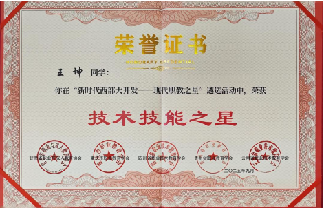 本次评选活动以“赋能西部发展、培育职教英才”为核心,旨在发掘新时代职业教育领域的优秀学子与创新实践成果,为新时代西部大开发战略注入职教力量,全省仅入选60人。评选过程中,评审专家组围绕专业技能水平、实践应用能力、综合素质发展等多维度进行严格考核。龚均、王坤两位同学凭借在校期间掌握的专业技能与学科竞赛成果,最终斩获荣誉称号。