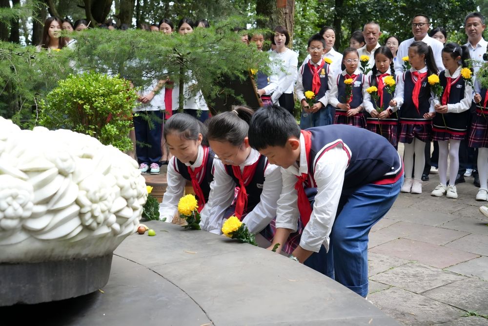 在场师生向聂耳墓敬献鲜花(2025年9月5日摄)。