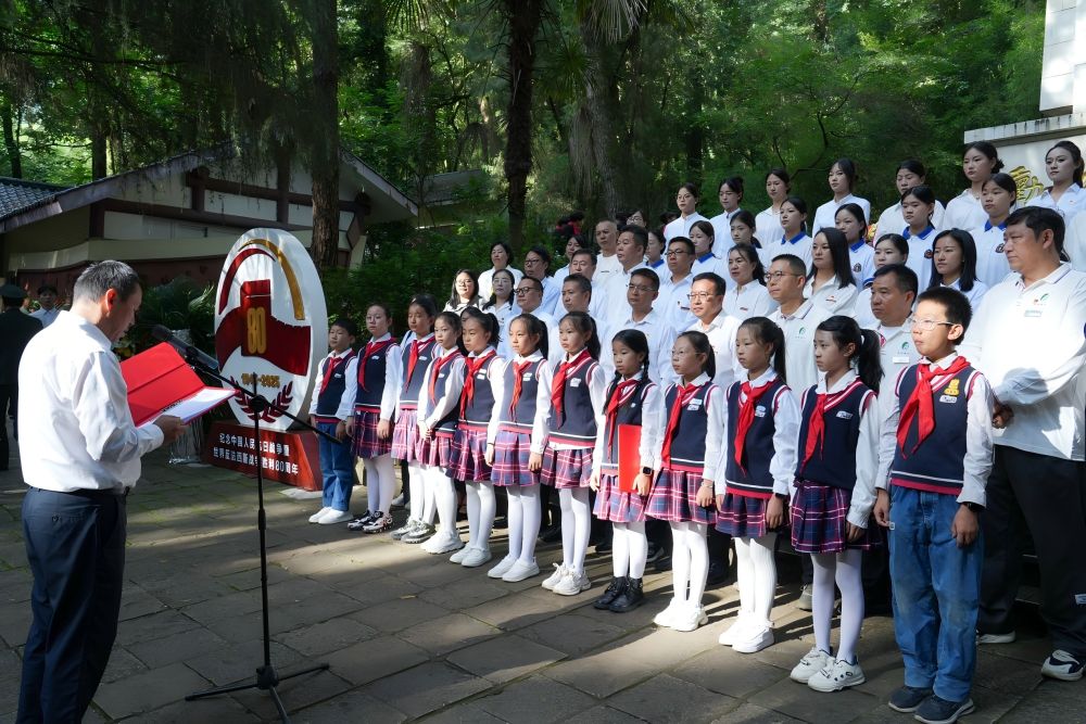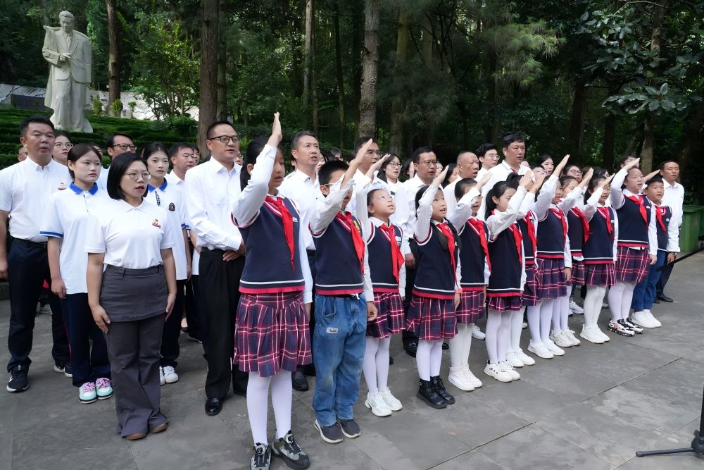 聂耳墓前全体师生齐唱国歌(2025年9月5日摄)。
