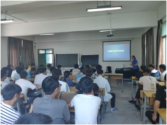 测量行业专家对激光扫描仪进行讲解并对校园进行扫描建模。