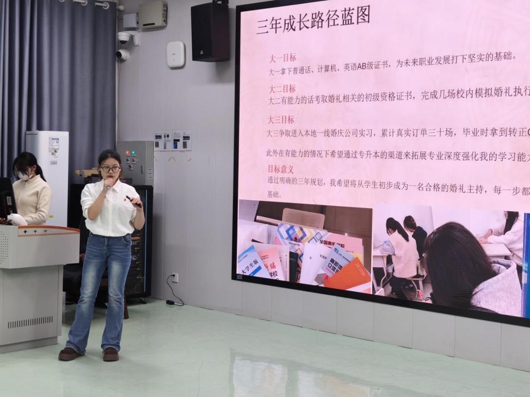 本届大赛以“筑梦青春志在四方,规划启航职引未来”为主题,设立成长与就业两大赛道,吸引我院300余名学生踊跃报名。经过院级初赛的选拔,我院学生李洛妍、周本婷、赵慧敏三名同学晋级校赛初赛,最终李洛妍同学进入校赛决赛。决赛包含主题陈述、评委提问等环节,全面考察选手的自我认知、职业定位与行动规划能力。评委对选手的表现给予充分肯定,并从规划逻辑、创新思维与实践路径等方面提出专业建议。