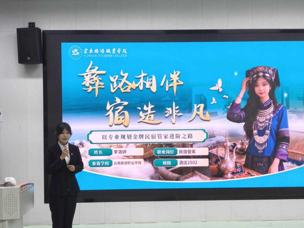 在决赛中,李洛妍同学以《彝路相伴 宿造非凡》为题,紧扣楚雄州民宿行业转型趋势,提出将金牌民宿管家服务融入彝族地区酒店全链条管理的创新思路。她通过国内案例对比、数据模型分析,生动展现了从基层服务到管理层的职业成长路径,最终以夺得校赛金奖的成绩。“比赛让我深刻认识到,未来的酒店人不仅是服务者,更应是旅游行业的多面手。”李洛妍在比赛结束时表示。周本婷和赵慧敏同学也分别夺得校赛银奖和铜奖。