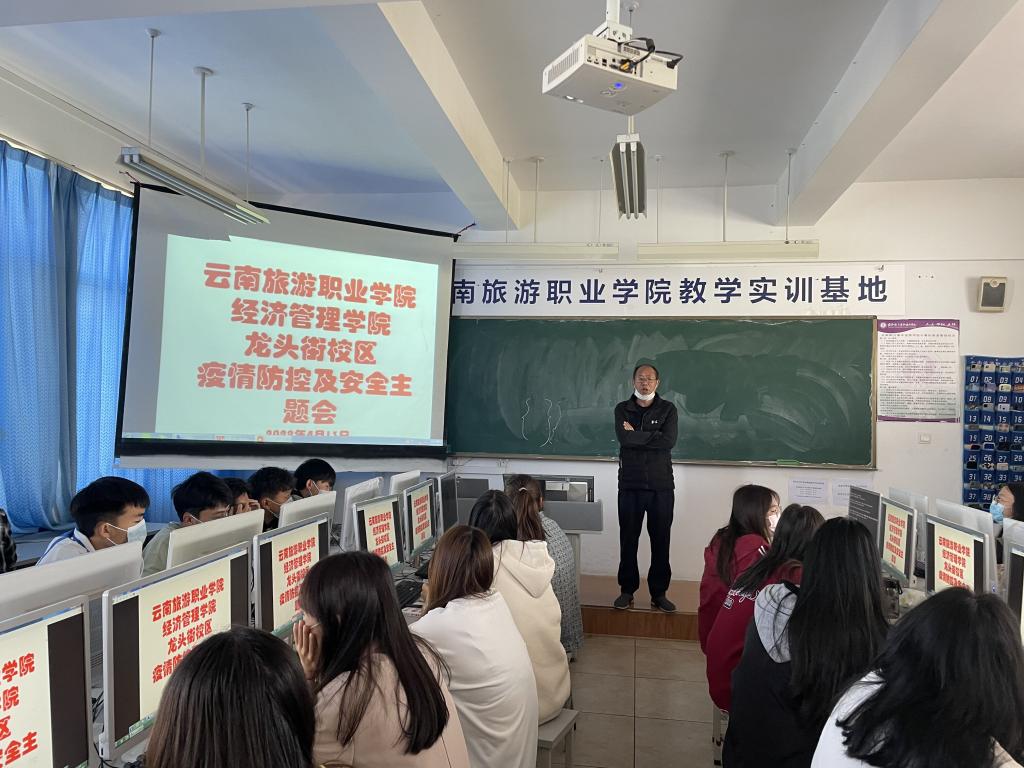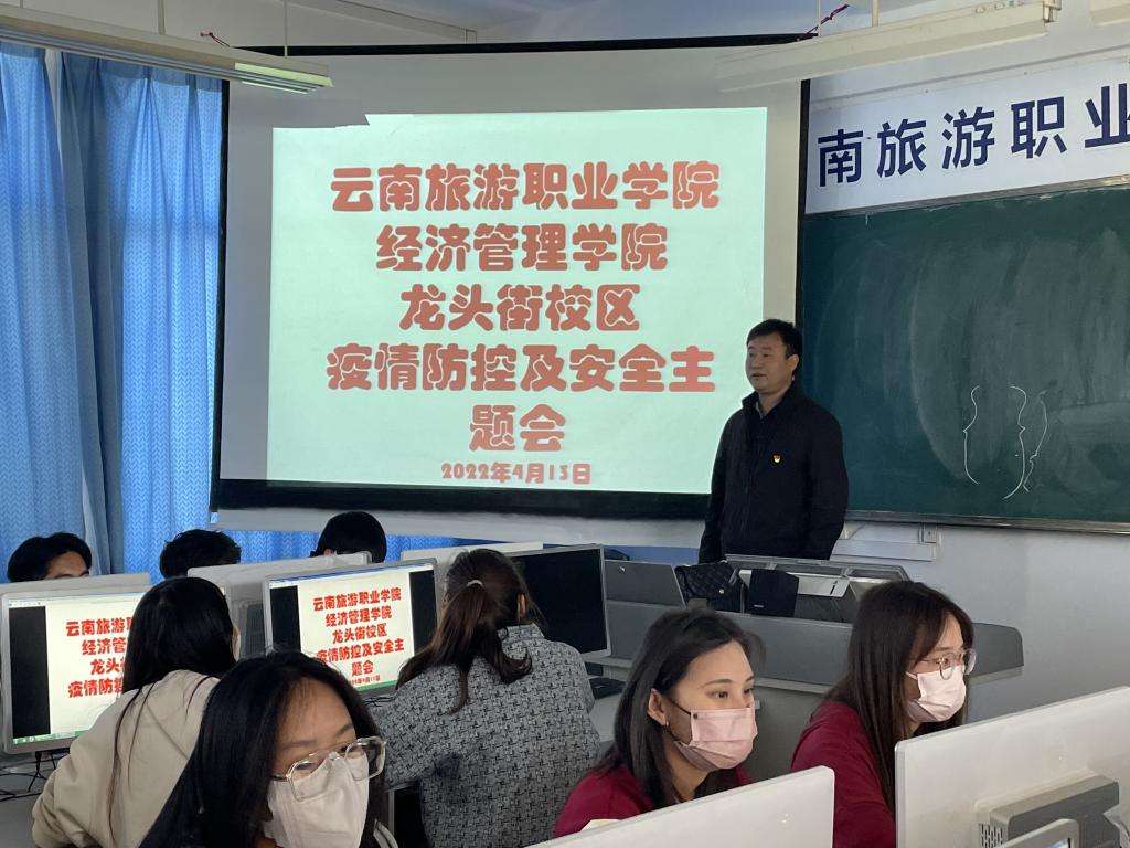 为进一步做好疫情防控期间学院的安全工作,促进各项安全制度落实,确保疫情防控工作与学校安全工作齐头并进,2022年4月14日上午,云南旅游职业学院经济管理学院党支部书记张小军及院长赵云栋到我校龙头街校区开展疫情防控及安全专项教育班会。张小军书记介绍了学院近段时间疫情防控工作整体情况,通报了安全检查中发现的问题,深入分析了当前疫情防控形势,并对下阶段疫情防控工作提出明确要求。