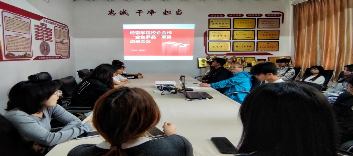 4月17日,项目启程前夕,经济管理学院召开动员大会。会上,学院院长赵云栋做了重要讲话,为全体师生注入强劲动力。赵院长指出,本次实训项目是学院深化校企合作、推进产教融合的重要途径。罗平县拥有丰富的特色资源与发展机遇,同学们要珍惜深入基层的机会,将电商直播、电子商务等专业知识转化为“多播多拍”的主动实践,在实践磨砺中锤炼意志品格,以良好风貌展现经管学子的专业素养。